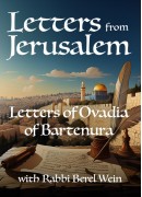 Before settling in Jerusalem, Rabbi Ovadia of Bartenura traveled extensively within the Land of Israel. Through the anecdotes in his letters, sometimes funny and sometimes quite surprising, we get an insider's view of 15th century Jewish life in Gaza, Bethlehem, Hebron, and above all, Jerusalem itself.