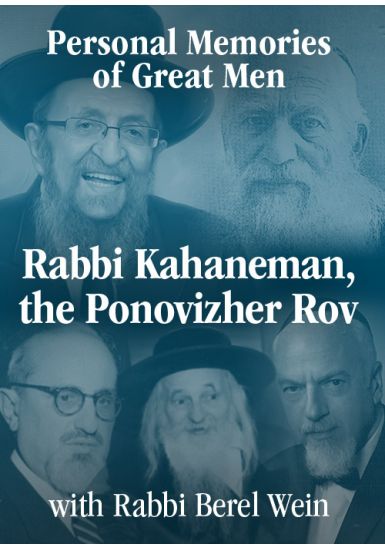In the 1960's, Rabbi Wein was given "the opportunity of a lifetime" - he became an assistant to the Ponevezher Rov while he fundraised in Miami Beach. As a result, he was privileged to hear the Rov's recollections of the Holocaust, the wars in Israel, and his leadership in reviving Torah Jewry. Rabbi Wein shares these stories, delivering a lecture that will keep listeners absolutely riveted.